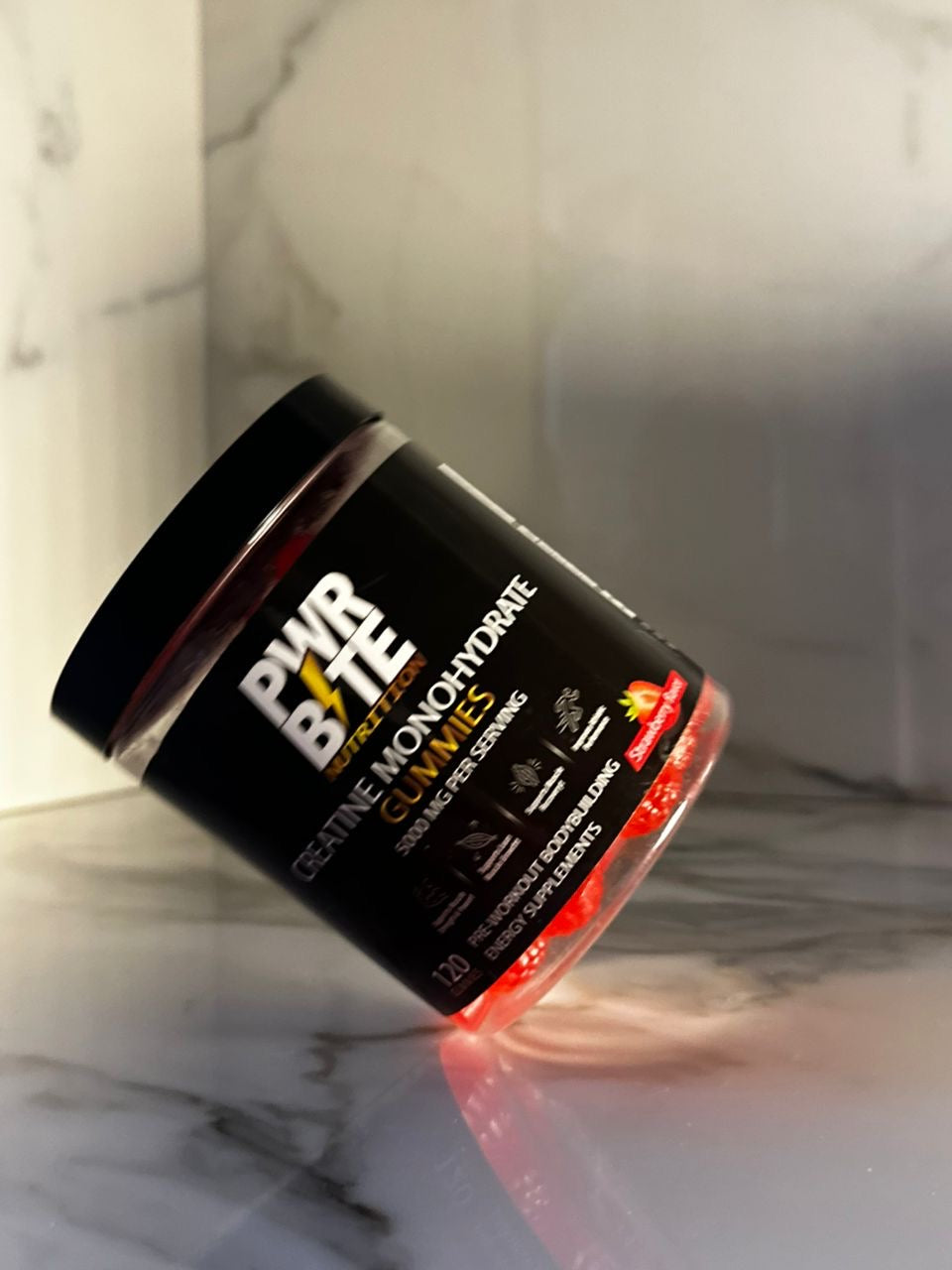 Nuestras gomitas combinan rendimiento, sabor y comodidad. Olvídate de los polvos difíciles de mezclar: con PWRBITE obtienes la misma efectividad de la creatina monohidratada, pero en una forma práctica, deliciosa y perfecta para tu día a día.